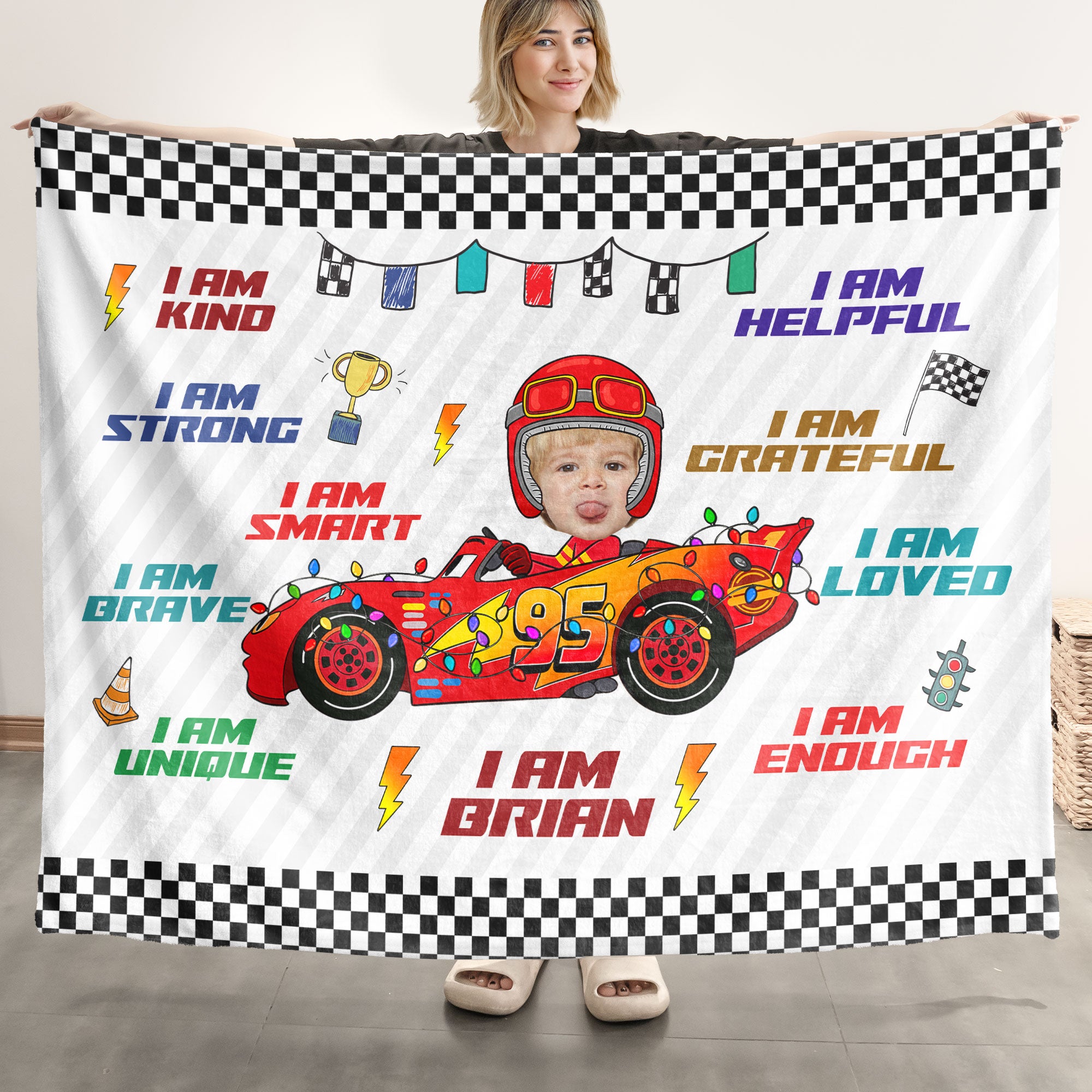 Custom Kid Face Car Toys Affirmation Gift – Personalized Photo Blanket Big Size