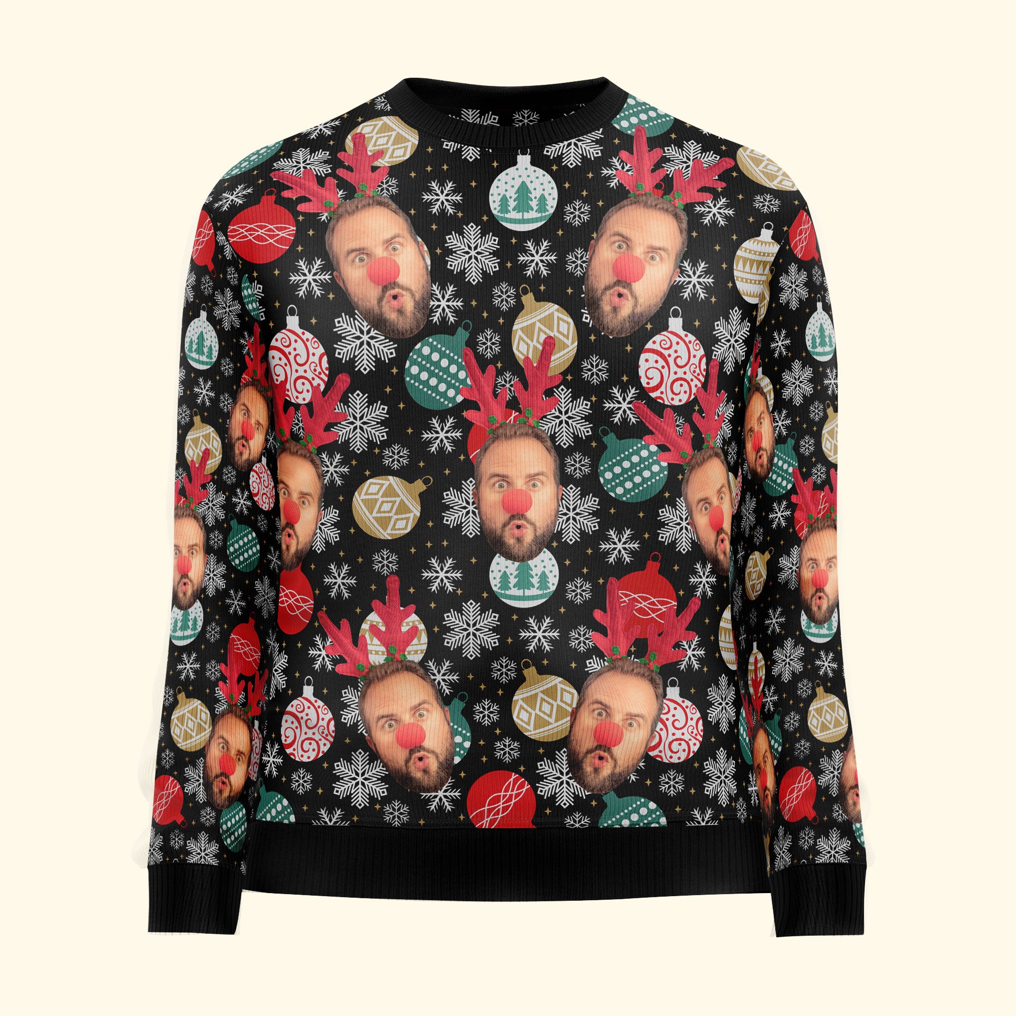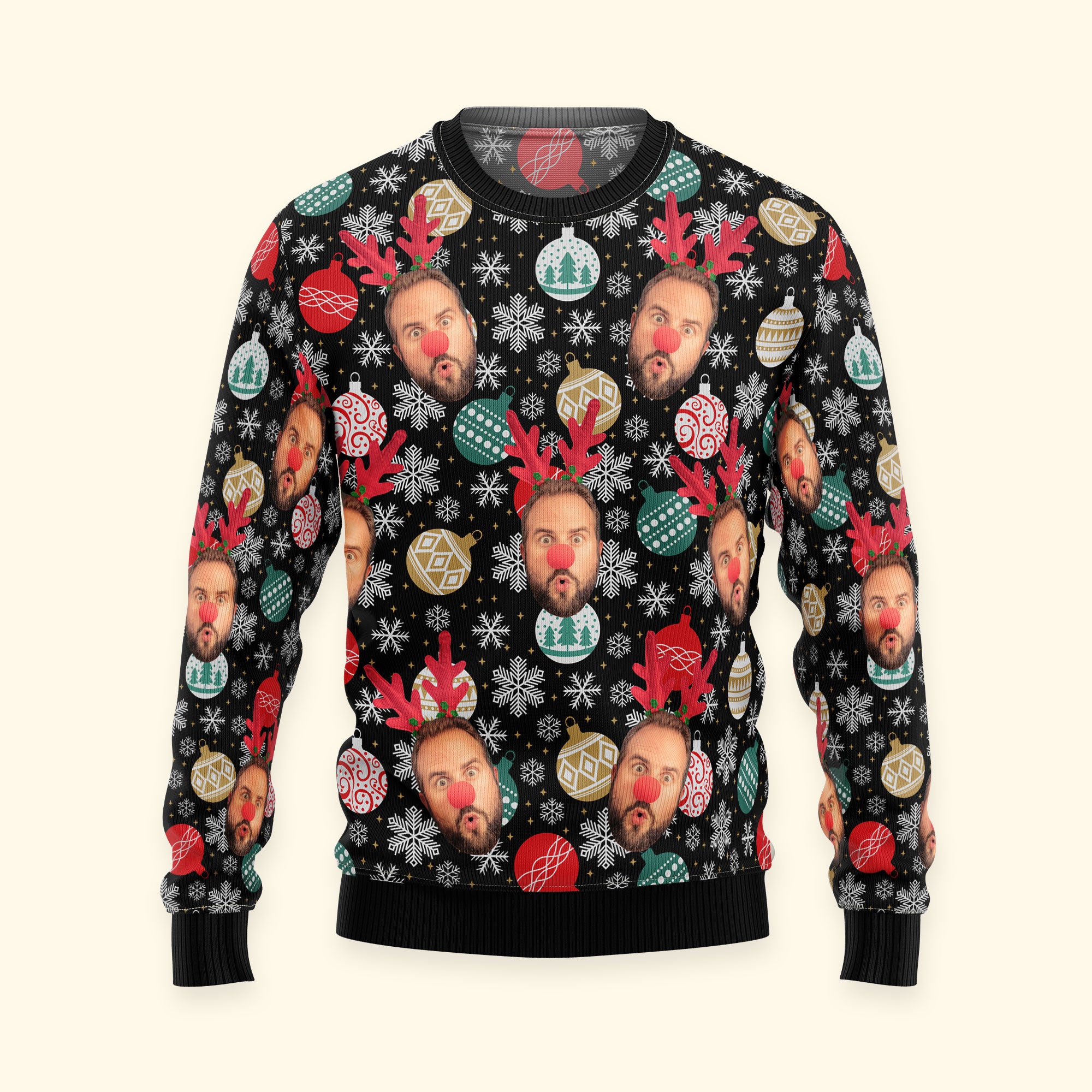 Be the first to review “Face Christmas Family Baubles Balls And Snowflakes – Personalized Photo Ugly Sweater”
