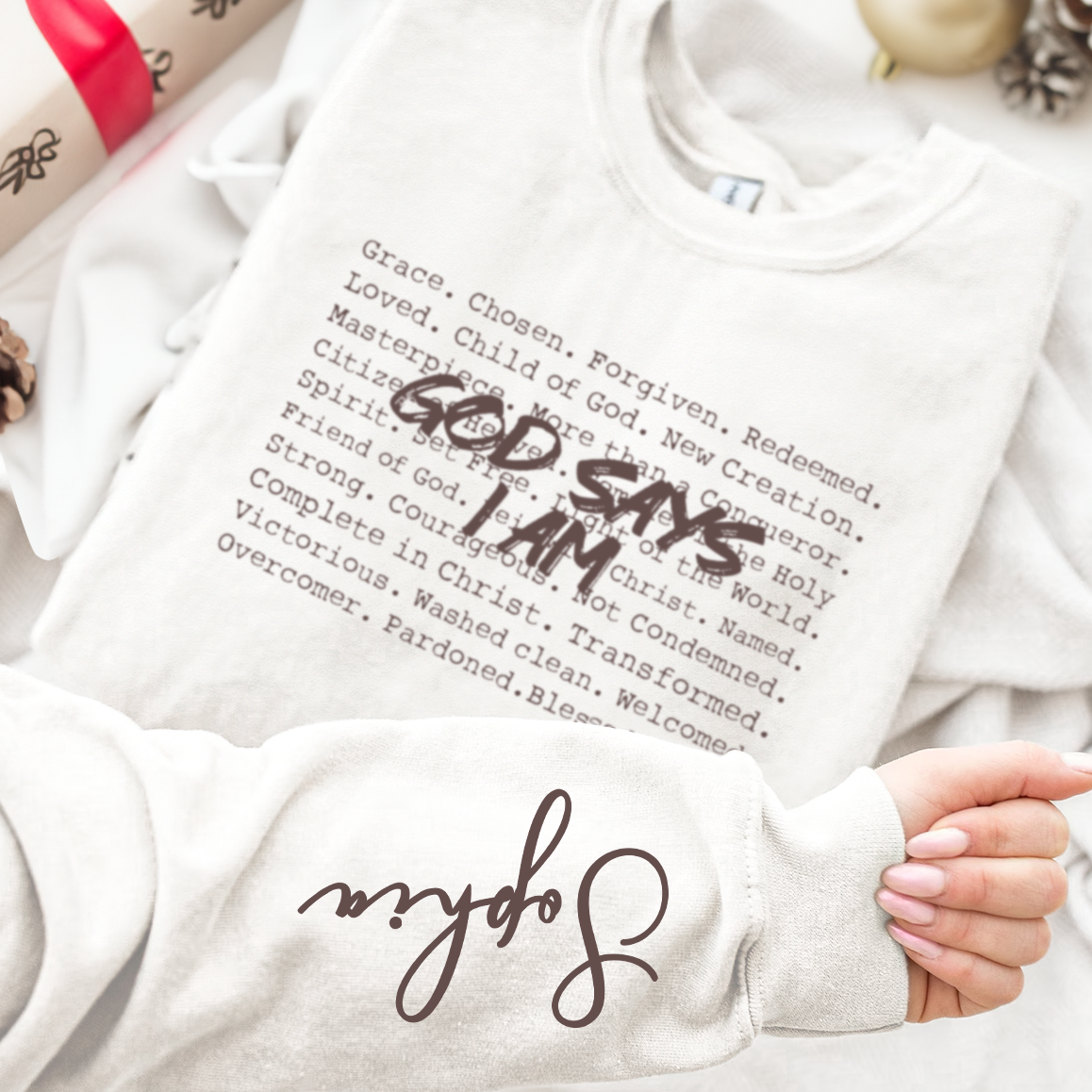 Indulge in a warm and comforting embrace with our God Says I Am Christian Typewriter Bible Verse – Personalized Sweatshirt, aimed at creating a bond with faith and spirituality. As a casual outing top or a cozy indoor wear, this sweatshirt is perfect for her – mom, daughter, or wife, encapsulating a strong Christian message that subtly invigorates the heart with courage, grace, and redemption. A unique and thoughtful present for Christmas, birthdays, or any occasion that deserves a meaningful gesture.