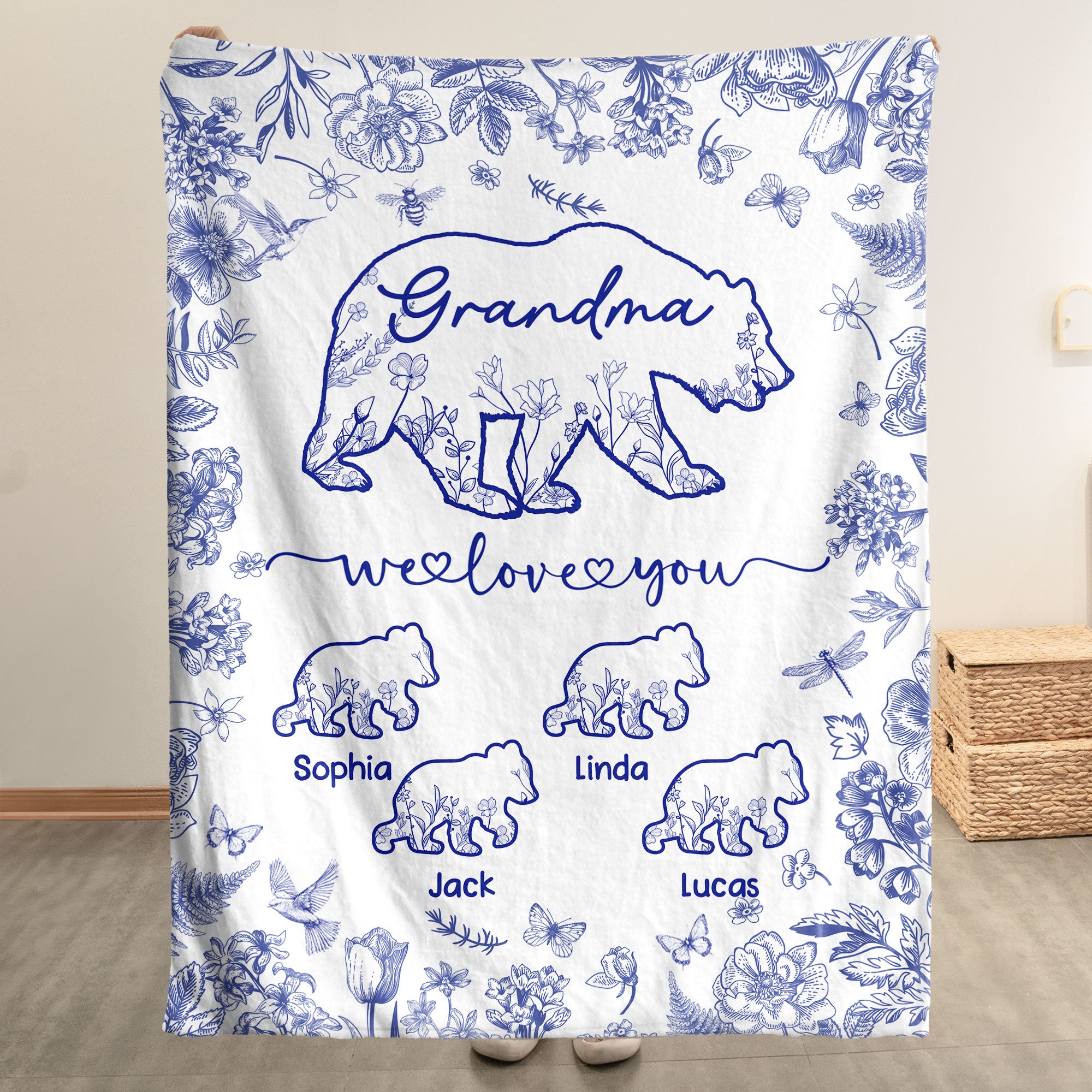 Grandma Bear Toile De Jouy – Personalized Blanket Big Size