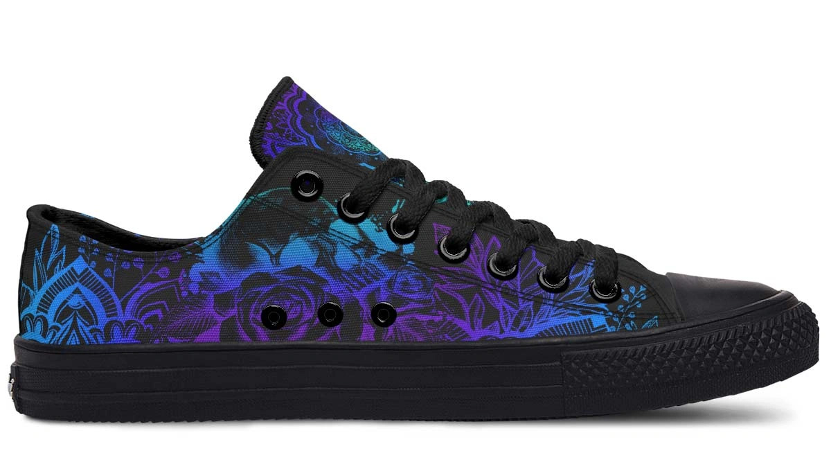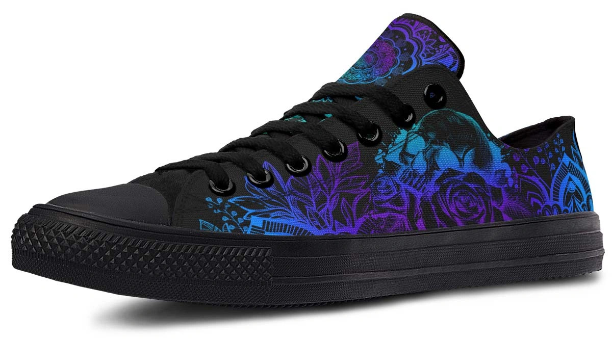 Skull Garden Black Low Top Sneakers – Floral Gothic Style